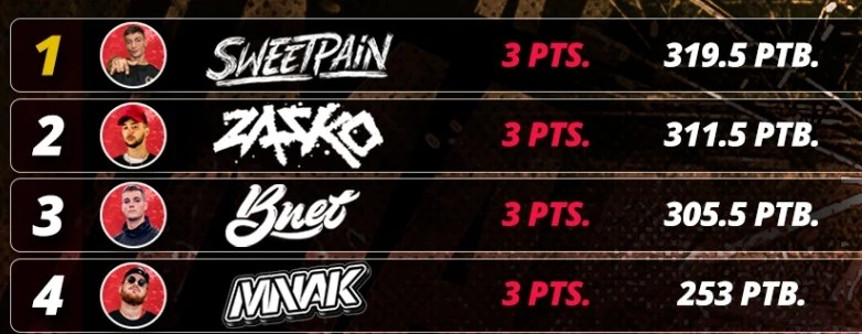 Puntaje de los jueces en la batalla Tirpa Vs Bnet (FMS España 2020)